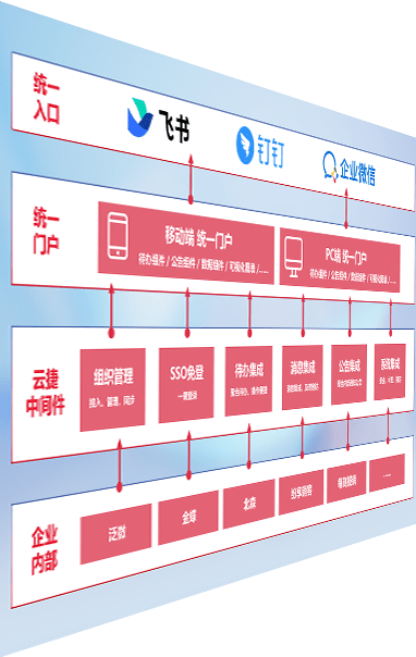 对协作平台提供支持服务,,支持企业应用与协作平台对接,,,包含组织同步、、消息集成、、、待办集成等。。。。支持目前主流的协作平台:钉钉、、企微和飞书。。